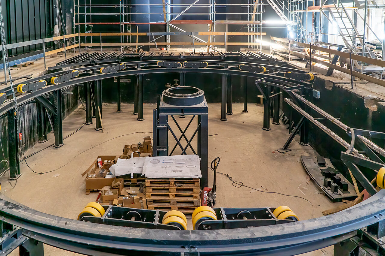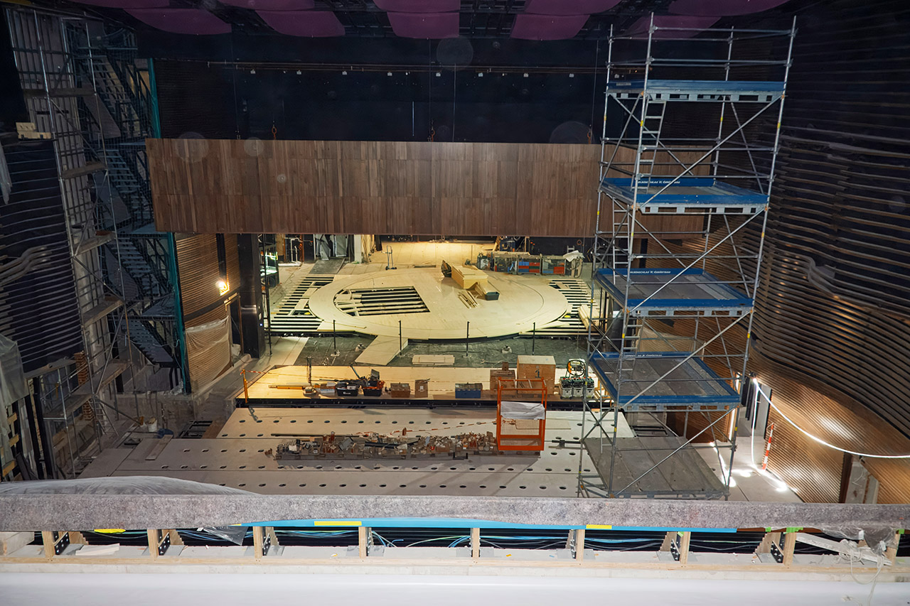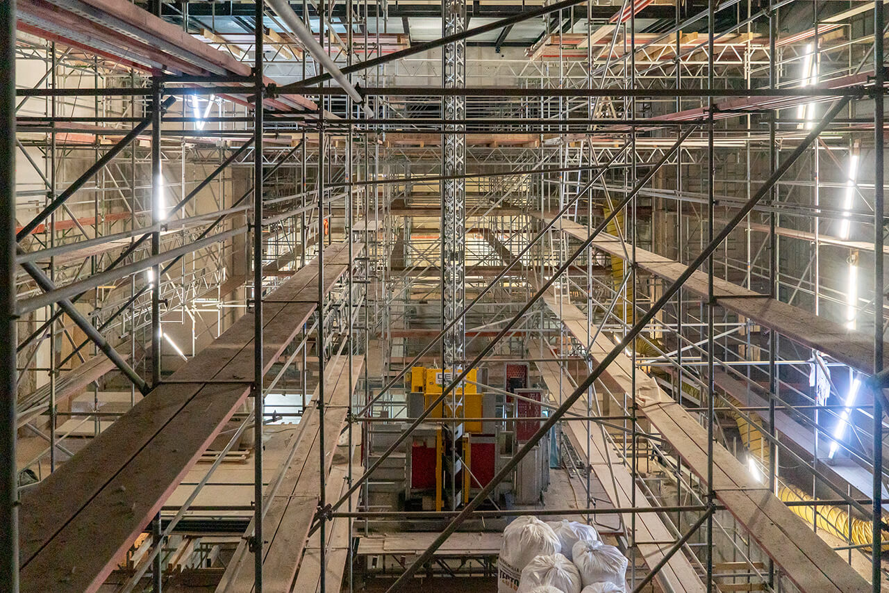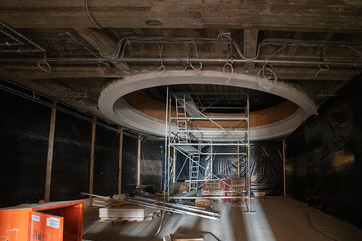 Bei Begehungen durch das Gebäude merkt man an allen Ecken: die Fertigstellung des Friedrichsforums rückt näher! Die Bestuhlung im Großen Saal ist eingebaut, Estrich- und Terrazzoarbeiten laufen, die Zeichen stehen auf Eröffnung! Nach der Übergabe des fertigen Gebäudes folgen aber noch Brandschutzabnahme und umfassende Tests und Einrichtung der eingebauten Technik. Das Team des Friedrichsforums arbeitet unter Hochdruck daran, das alles so ineinanderzuschieben, dass möglichst schnell Veranstaltungen durchgeführt werden können.